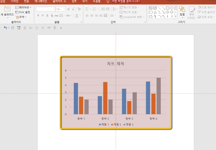 1. 해당 옵션을 활용하기 이전에 위에 보이는 것과 마찬가지로 슬라이드 내부에 임의의 차트를 하나 삽입해보았습니다.