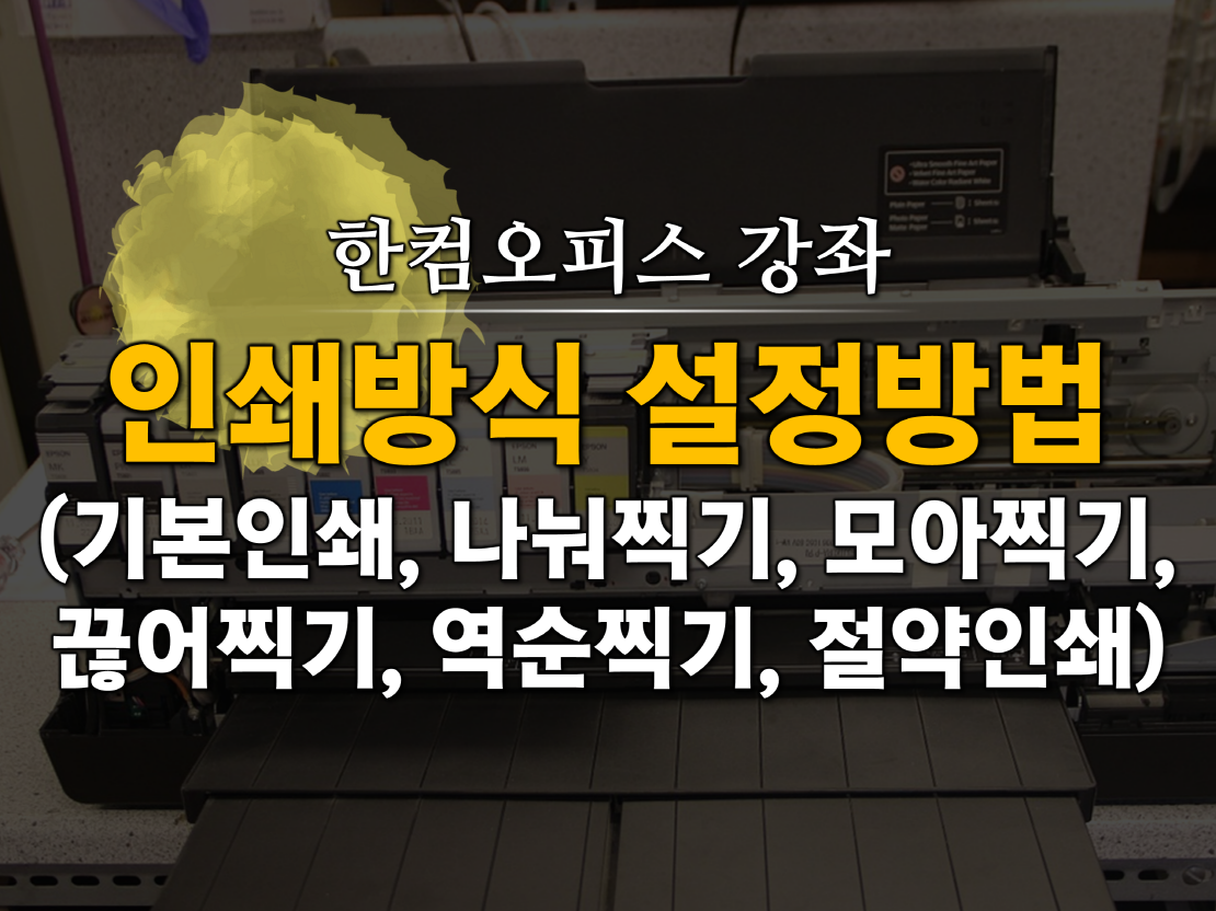그런데 지금은 사용자의 다양한 요구사항을 만족시키기 위해 인쇄 방식만 하더라도 기본인쇄, 나눠찍기, 모아찍기, 끊어찍기, 역순찍기, 절약인쇄 등 실로 다양한 옵션을 제공하고 있습니다.